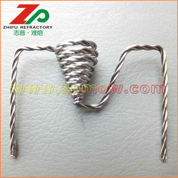鎢加熱子(鎢蒸發(fā)線圈)是一種由不同規(guī)格的單股或多股摻雜鎢絲組成各種形狀的金屬制品。通過特殊的熱處理工藝,具有很強(qiáng)的抗腐蝕性和高溫性能,穩(wěn)定性好,使用壽命長,廣泛應(yīng)用于薄膜技術(shù)的真空涂鍍、金屬蒸發(fā)、制鏡行業(yè)、顯像管行業(yè)等領(lǐng)域。